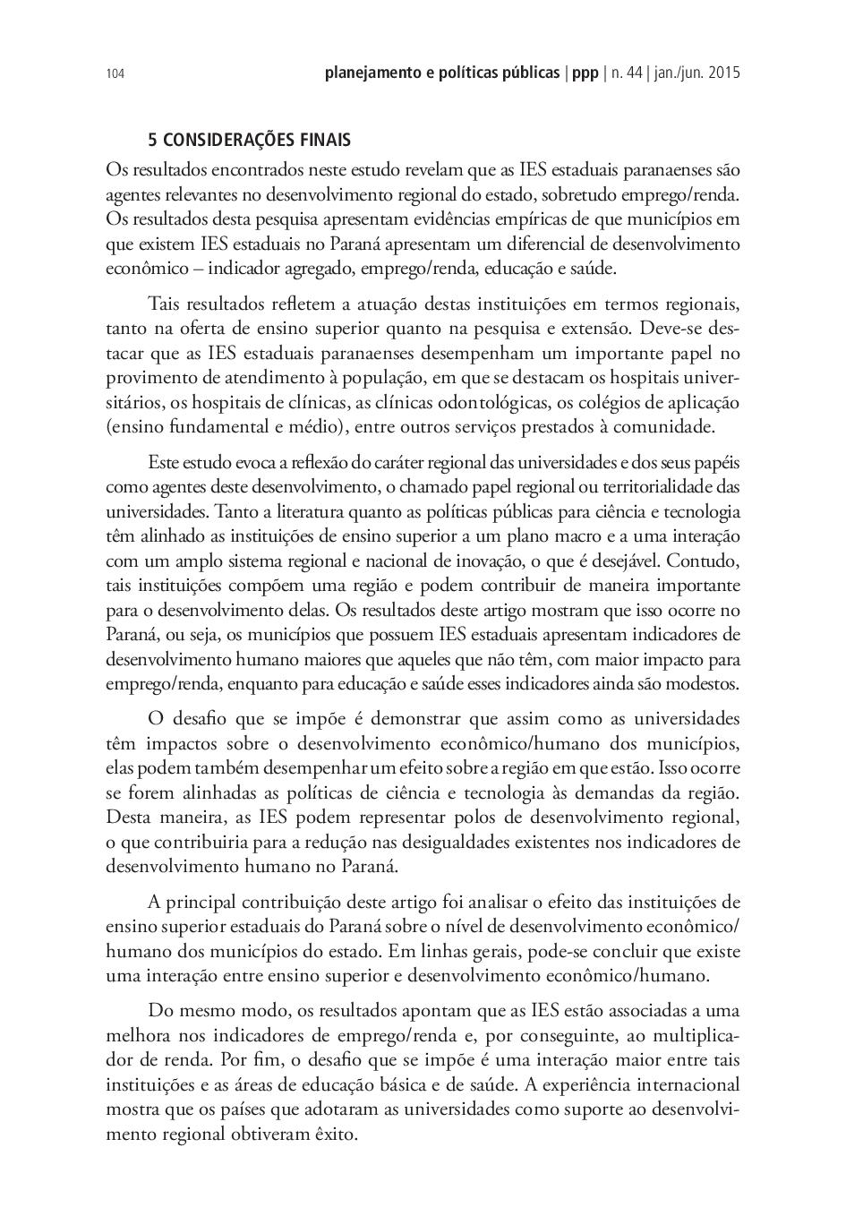 Fonte: INSTITUIÇÕES DE ENSINO SUPERIOR E DESENVOLVIMENTO ECONÔMICO: O CASO DAS UNIVERSIDADES ESTADUAIS PARANAENSES