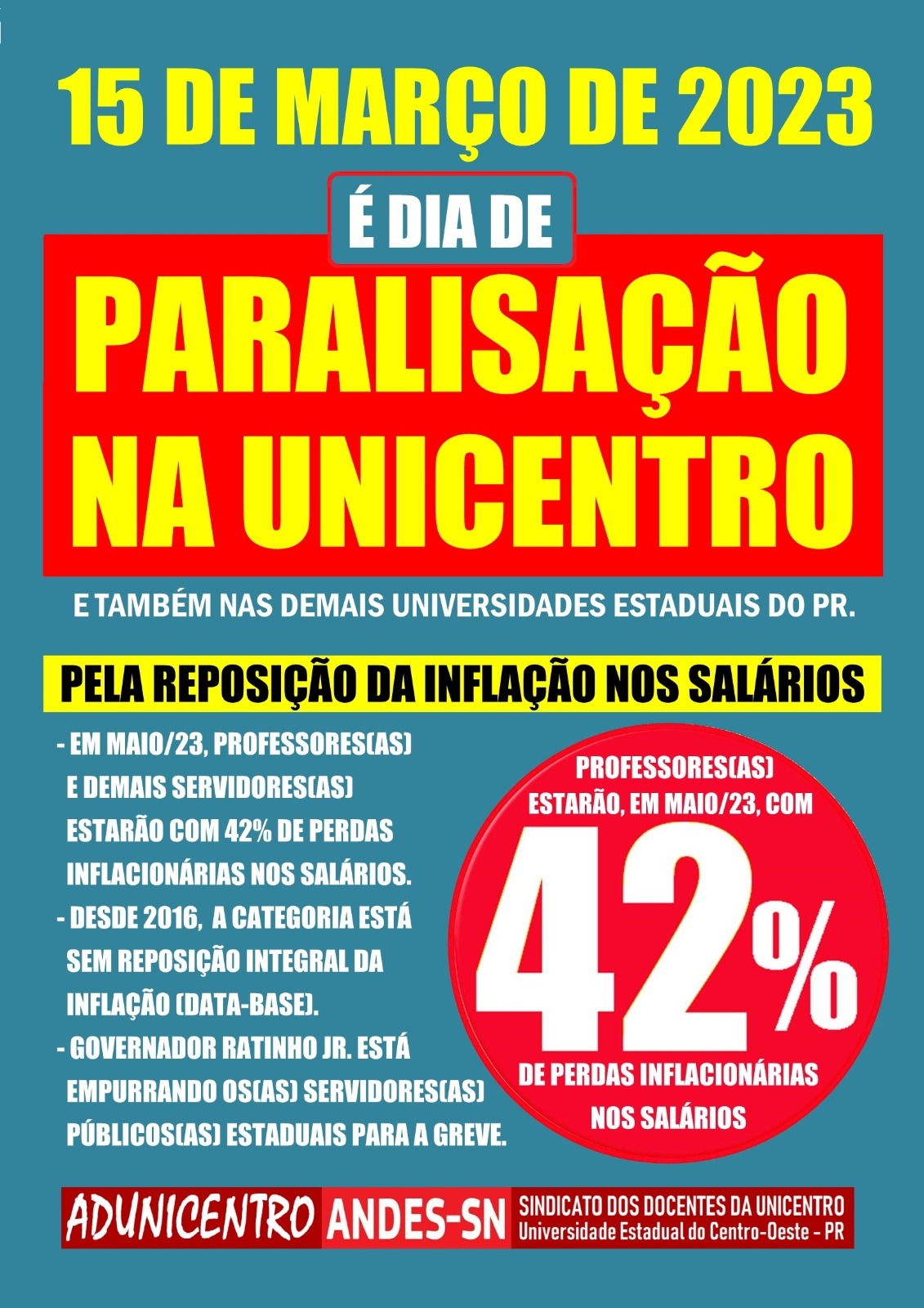 15/03/2023 é dia de paralisação na UNICENTRO pela reposição da inflação nos salários
