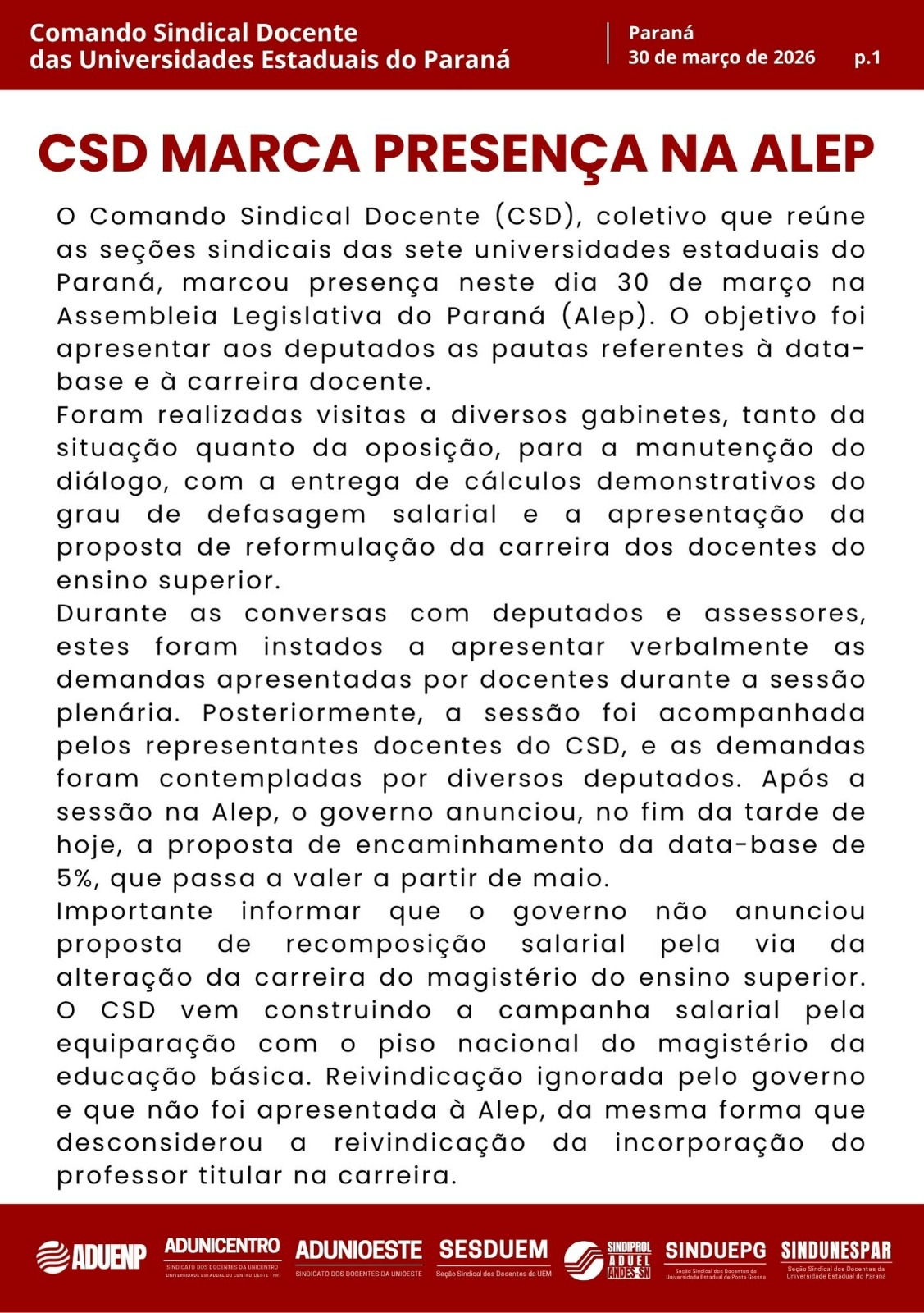 NOTA CSD: CSD MARCA PRESENÇA NA ALEP