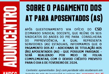 LEI DA CARREIRA DOCENTE (NR. 21.852/2023/PR) COM OS AUMENTOS DOS AT - ADICIONAIS DE TITULAÇÕES FOI SANCIONADA EM 15/12/23